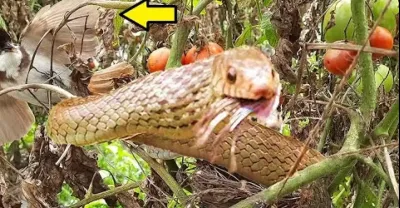 鳥媽媽與大蛇搏鬥以拯救幼鳥 |||蛇在媽媽面前咀嚼寶貝 |巢