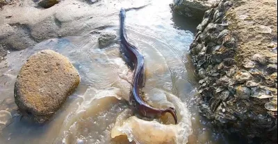皮皮趕海碰上「海蟒」出窩,一看周圍還不止一條,邊抓邊叫真嚇人