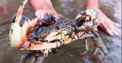 表妹在紅樹林旁邊的水溝撿大貨,徒手抓3斤的大青蟹,蘭花蟹,一隻就能賣五六百