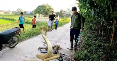 2 brave hunters confront the ferocious giant cobra in the deserted house - kingcobra attack