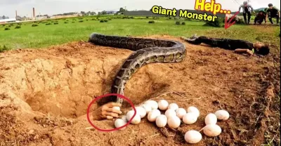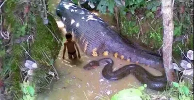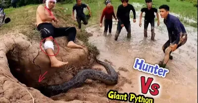 3 名勇敢的獵人面對巨蟒襲擊貧窮的年輕人