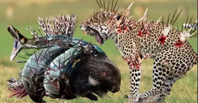 Motherhood Instincts! Porcupine Attacks Leopard And Python With Sharp Feathers To Save Her Baby.