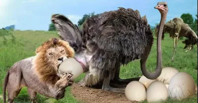 Lion Vs Ostrich Fight To Death | Mother Ostrich Fail To Protect Her Eggs From Lions Hunting