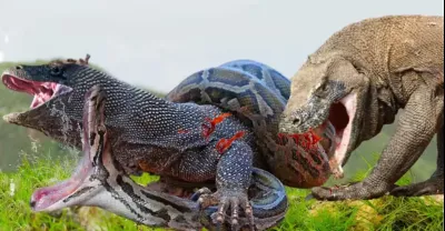 Komodo Trying To Attack and Kill Python To Escape The Death. Battle For Survival- Komodo Vs Python