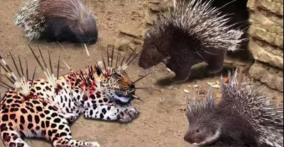前 10 種動物在試圖攻擊豪豬時慘了 - 豹、獅子、獵豹