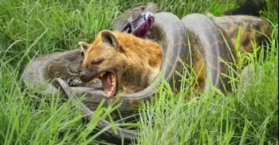 HIENA SE DÁ MAL! COBRA GIGANTE ENGOLE HIENA INTEIRA
