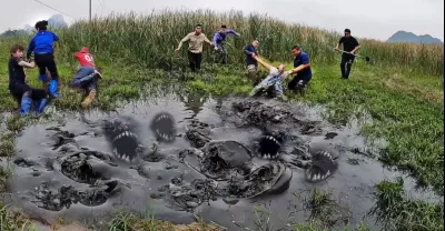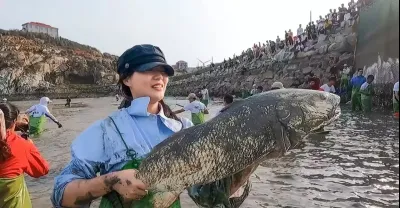 3萬平的巨坑被抽干,引來幾百人圍觀,大貨隨便抓