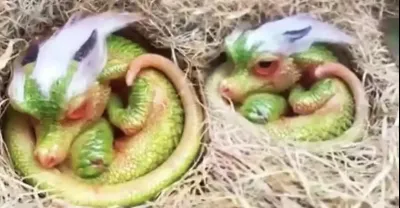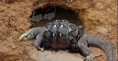 蟒蛇試圖竊取蟒蛇的孵化蛋,將科莫多巨蜥纏了