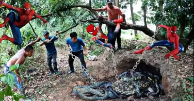 勇敢的蜘蛛俠對抗 3 條巨蟒
