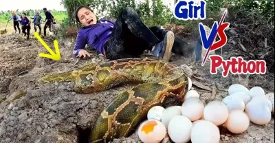 勇敢的女孩和一隻吃鴨蛋的蟒蛇打架