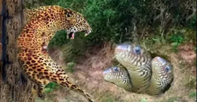 太神奇了.. 當豹子接近超級巨蛇時會發生這種情況。難以置信的