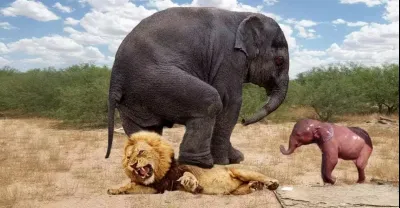 大象媽媽犧牲自己來拯救她的嬰兒免受獅子狩獵 -