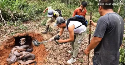 獵人使用高科技探測器捕捉兇猛眼鏡蛇的巢穴