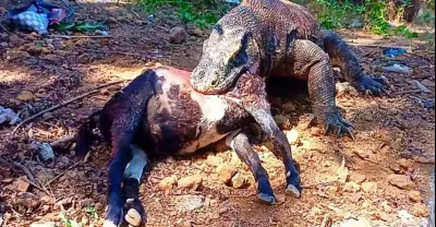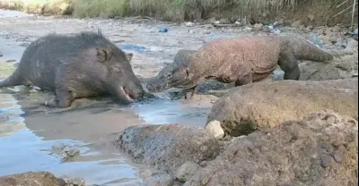 part 2, wild boar, eaten by two komodo dragons,,🐗
