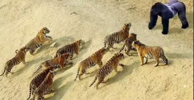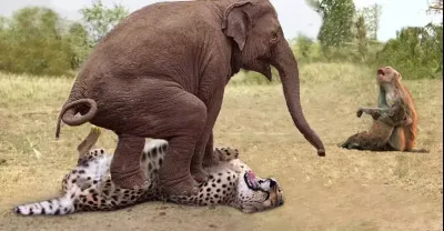 大象群從獵豹中救出小猴子 - 大象與獅子、犀牛、鱷魚