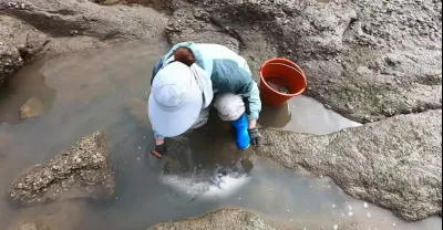 退潮後海邊一堆「發財坑」,大魚小魚到處亂竄,皮皮一窩一窩端
