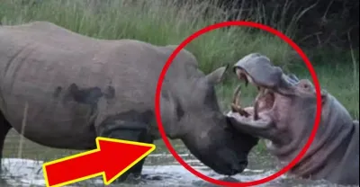 實拍犀牛大戰河馬!從白天打到晚上,牛角尖牙都崩斷了,大象見了都趕緊逃走!