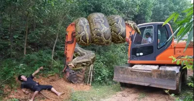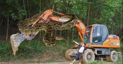 捕捉巨型蟒蛇,最大的蟒蛇 - 挖掘機遇見巨蛇