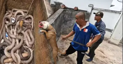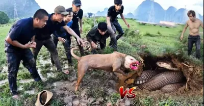 勇敢的鬥牛犬面對200公斤的巨蛇
