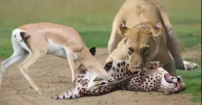 奇怪...獅子咬豹頭拯救黑斑羚 - 黑斑羚對豹,獅子,鬣狗