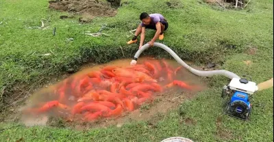釣魚令人興奮的技能,使用強大的泵捕獲許多魚,在大洪水後捕獲許多魚