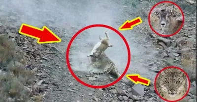 實拍!3隻雪豹滿山搜尋盤羊,跟著獵物一起跳崖,結局出人意料!