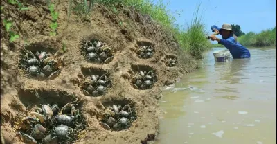哇,難以置信,今天一個漁夫在湖邊挖洞挖了很多骰子