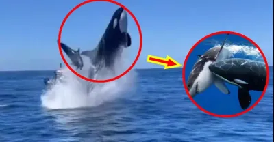 實拍!3頭虎鯨捕食大白鯊,一躍而起撞出海面,結果遇到座頭鯨轉頭就跑!