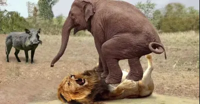 捕食者成為獵物 大象群擊倒獅子拯救疣豬,大象與犀牛