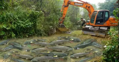 釣魚刺激:用大型挖掘機釣多條魚,容量泵吸水抓魚