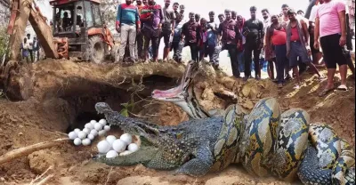 可怕的生存戰!蟒蛇為了爭奪蜥蜴蛋而消滅鱷魚