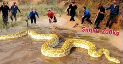難以置信,200磅巨蛇出現在沙漠中部的一個池塘