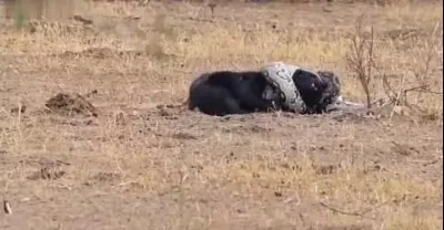 蜜獾與蟒蛇搏鬥,最後無法逃脫