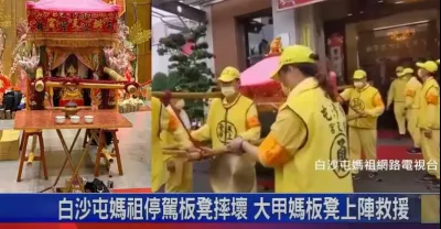 白沙屯媽祖停駕板凳摔壞, 大甲媽板凳上陣救援 #媽祖慈悲