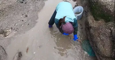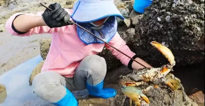 小章趕海抓到一隻價格不菲大龍蝦,還摸到一隻黑貝裡面有大珍珠