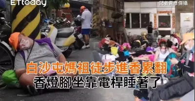白沙屯媽祖徒步進香累翻 香燈腳坐靠電桿睡著了