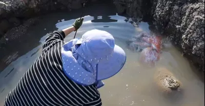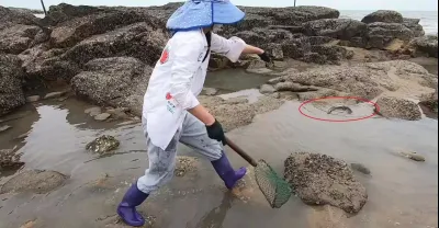 皮皮帶病趕海眼神出奇好,一眼望見坑中「毒物」,一般人都不敢碰