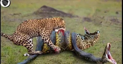 豹子敢擠戰友,衝破蟒蛇