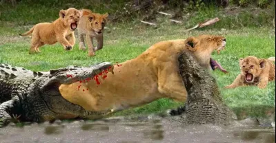 兇猛的戰鬥!鱷魚在攻擊獅子時收到了一個痛苦的結局-獅子與鱷魚