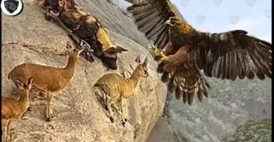 鷹可怕的空襲在懸崖上奪走了鹿的生命