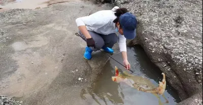 村裡人都來這裡抓青蟹,沒想到皮皮直接撞見「蟹王」,鬥了大半天