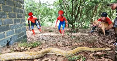被巨蟒襲擊的兩名男子向勇敢的獵人尋求幫助眼鏡王蛇