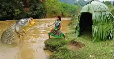 建造生存庇護所和釣魚大魚,獨奏叢林魚/烹飪魚美味