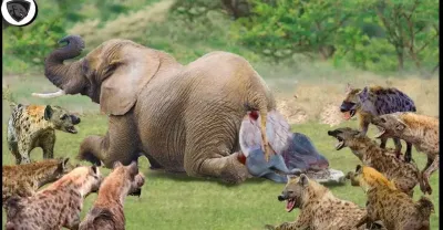 大象媽媽無法保護她的幼崽免受過於激進和嗜血的鬣狗的傷害