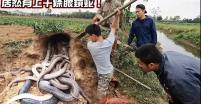 這男子利用探測器發現土中藏著不明生物!挖開土一開,竟然有一堆眼鏡蛇
