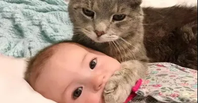 小貓成了帶娃保姆,還會哄娃睡覺蓋被子,比親媽還貼心