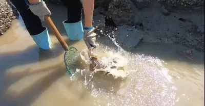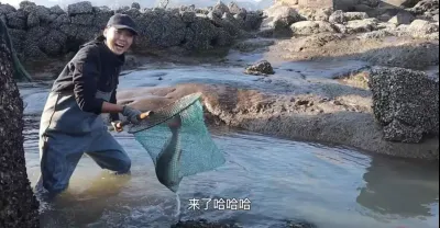 海坑裡藏了巨無霸,漁妹徒手抓不住換大抄網,這下發財了