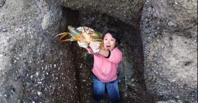 皮皮跳進天然隕石洞,意外撞見體型巨大的蟹王,竟比兩隻手掌還寬