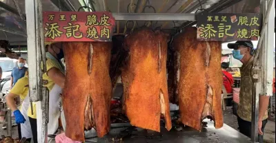 怡保一檔以車當店:古早味「脆皮燒豬」,每天兩個半小時賣八隻全豬,人潮一批又一批,老闆都來不及砍 .......顧客反應好吃,好吃還是好吃。