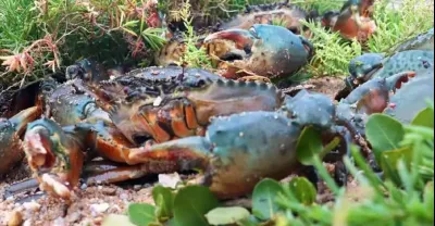 表妹趕海發現螃蟹,遍地三四斤的大青蟹隨便抓